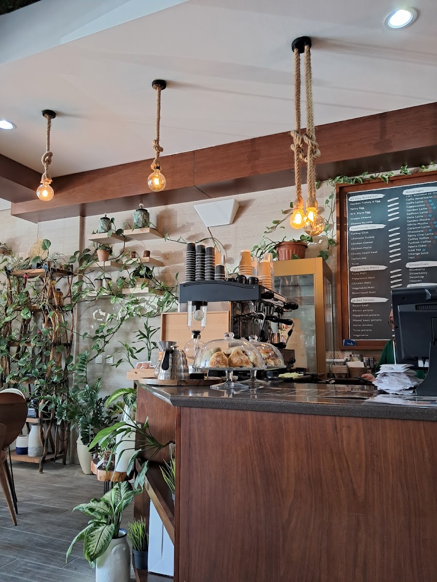 As you step inside, you're greeted by a bright interior adorned with vibrant live flowers that infuse the space with a sense of tranquility. The carefully arranged seating, including comfortable sofas, extends an invitation to sit back, relax, and savor every sip and bite in both the indoor and outdoor areas. With a delightful ambiance that harmonizes greenery and gentle decor, The Coffee Garden is ideal for enjoying conversations or unwinding with a good book.